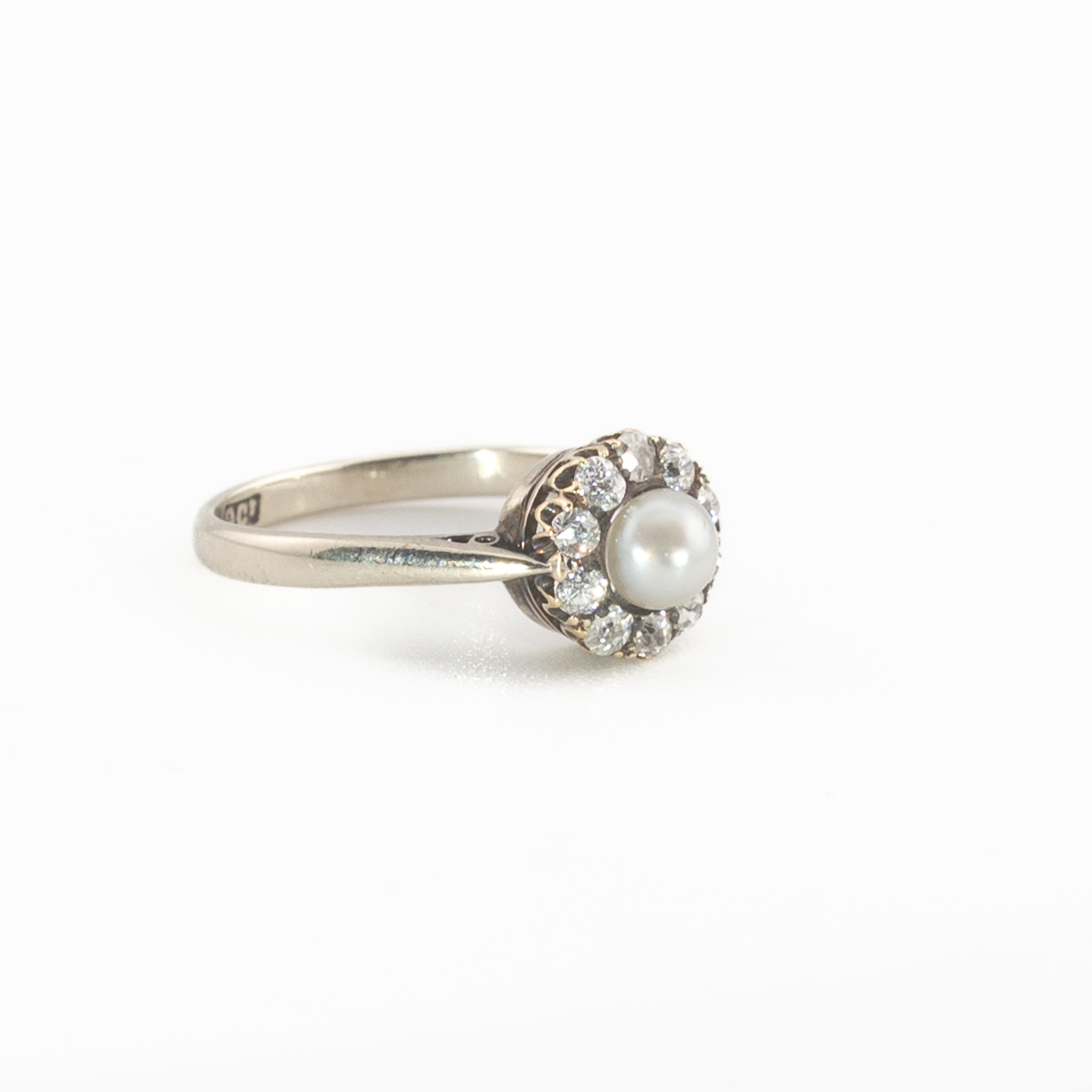 PIERŚCIONEK VINTAGE Z HODOWANĄ PERŁĄ SŁONOWODNĄ AKOYA I DIAMENTAMI, ZŁOTO 9 CT