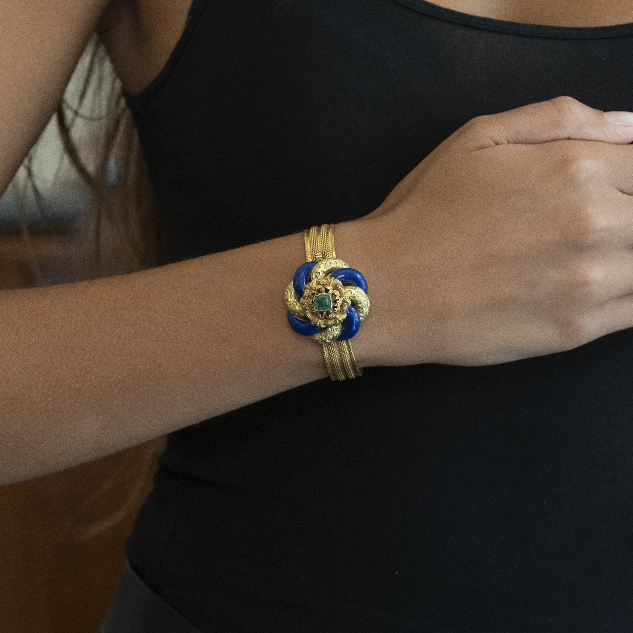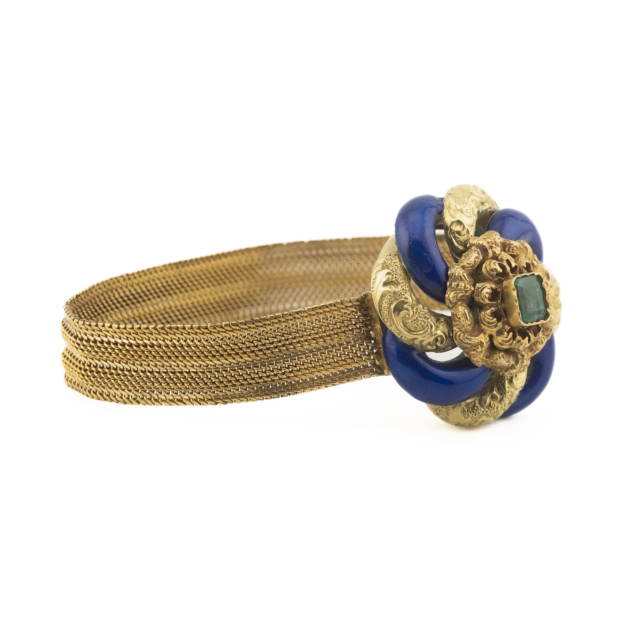 Złota bransoletka ze szmaragdem i kobaltową emalią, XIX wiek