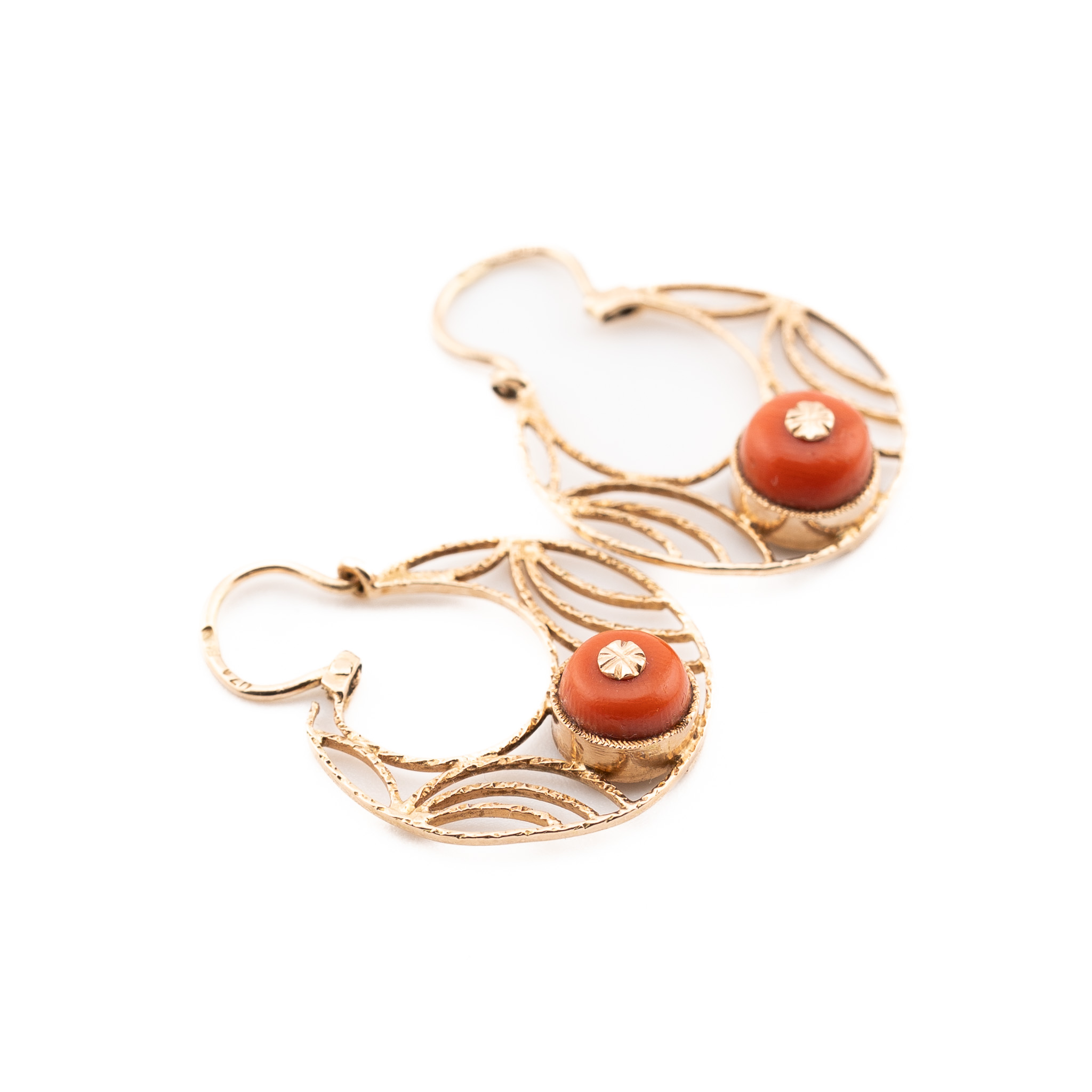 Złote kolczyki Au 0,585 z naturalnym koralem