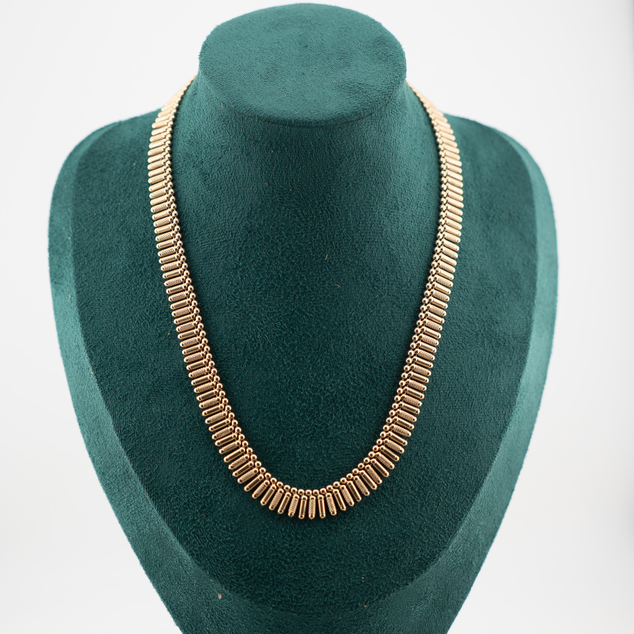 Naszyjnik wykonany ze złota próby 0,585 o efektownym, geometrycznym splocie. To elegancki model, który pięknie układa się na szyi i przyciąga uwagę swoim blaskiem. Doskonały wybór zarówno do codziennych stylizacji, jak i bardziej formalnych okazji.