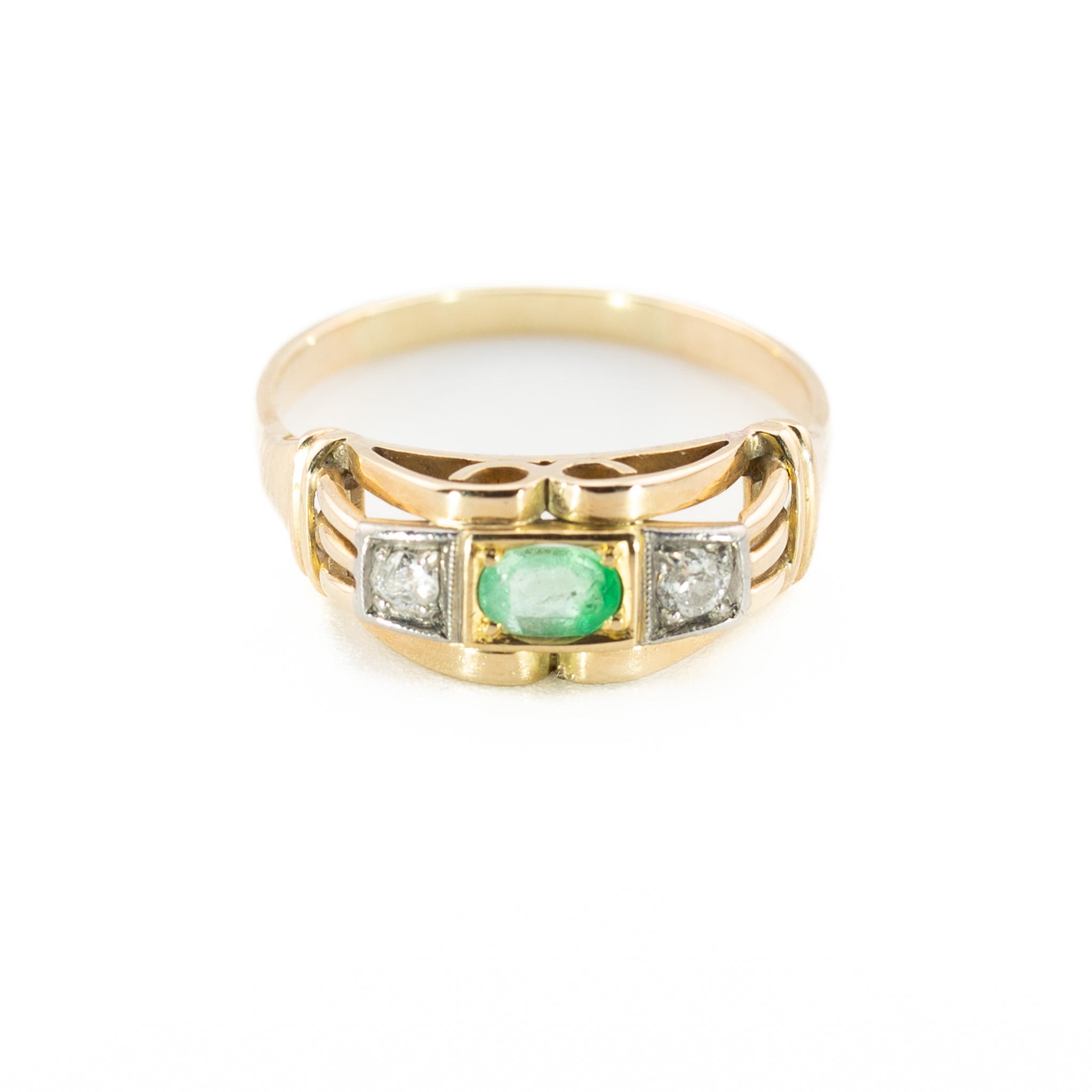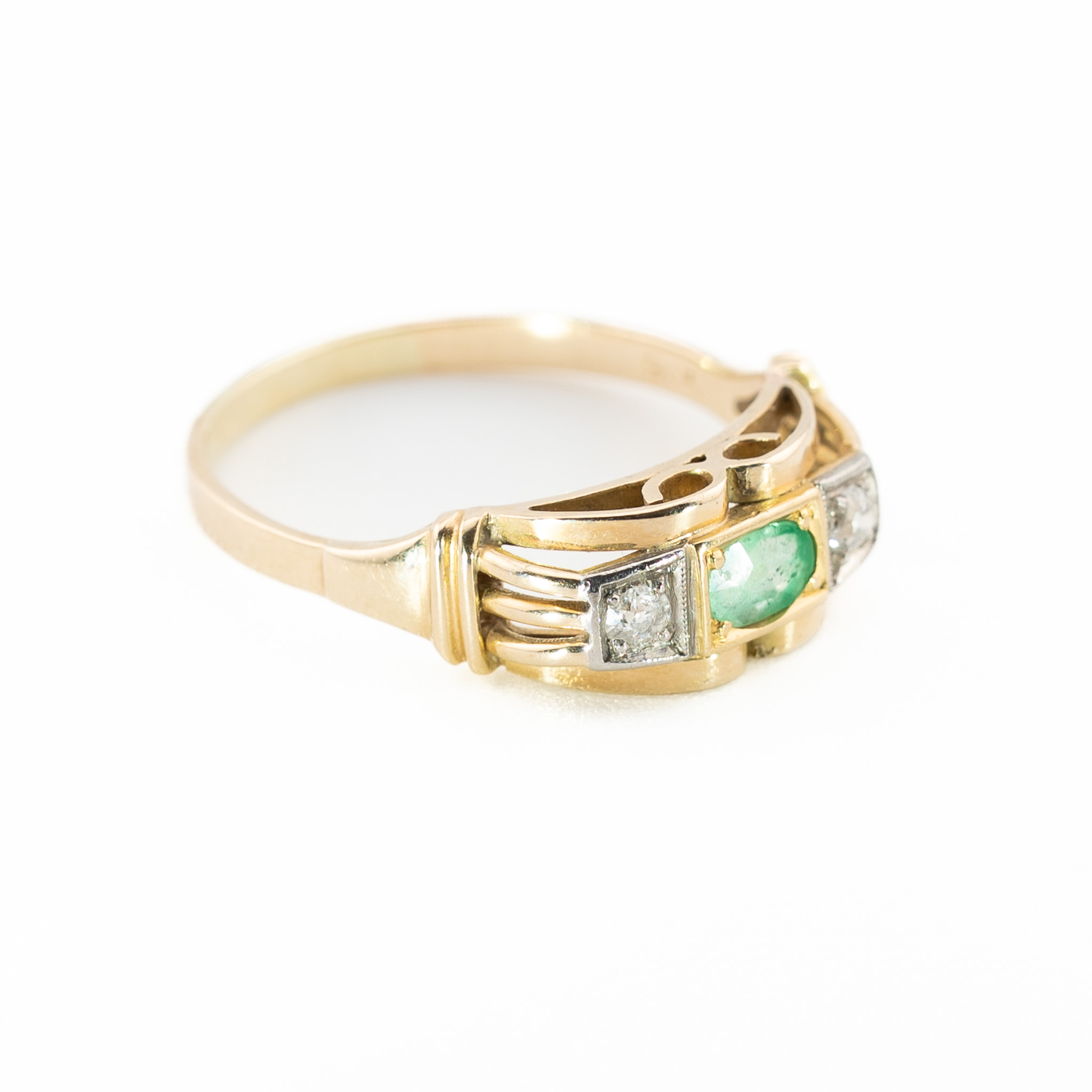 Złoty pierścionek vintage ze szmaragdem i diamentami